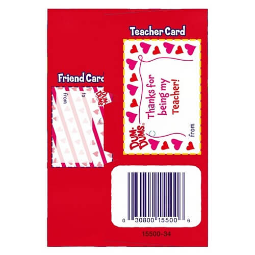 Dum Dums Valentine Candy Kit with 50 pops and 25 cards To/From cards plus a teacher card. The Dum Dums Valentine Kit contains up to 16 flavors to create delicious lollipop treats