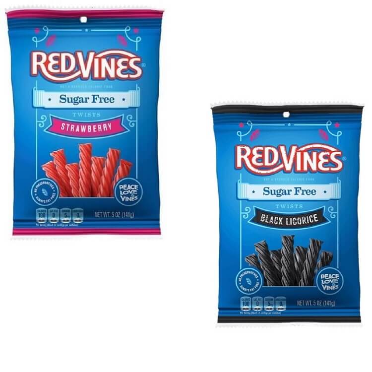 - Approximately 18 Sugar Free Black Licorice Twists per 5oz Bag & Approximately 18 Suga Free Strawberry Licorice Twists per 5oz bag